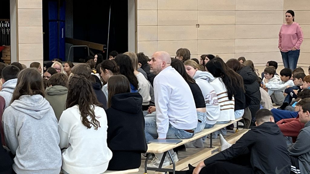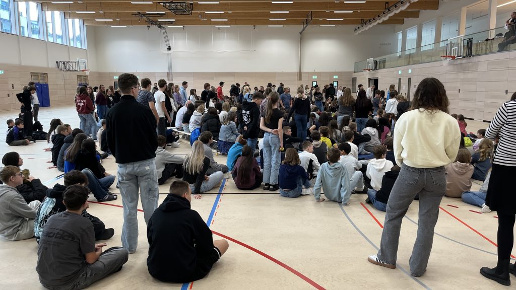 In der ersten Schulversammlung, die am 13.10.2025 fand in der Turnhalle stattfand, stellte Herr Geier die neuen Lehrkräfte vor und informierte die Schülerschaft über Regeln des Schullebens und Projekte des Schuljahres mit dem Schwerpunkt „Ausbildungsmesse“.