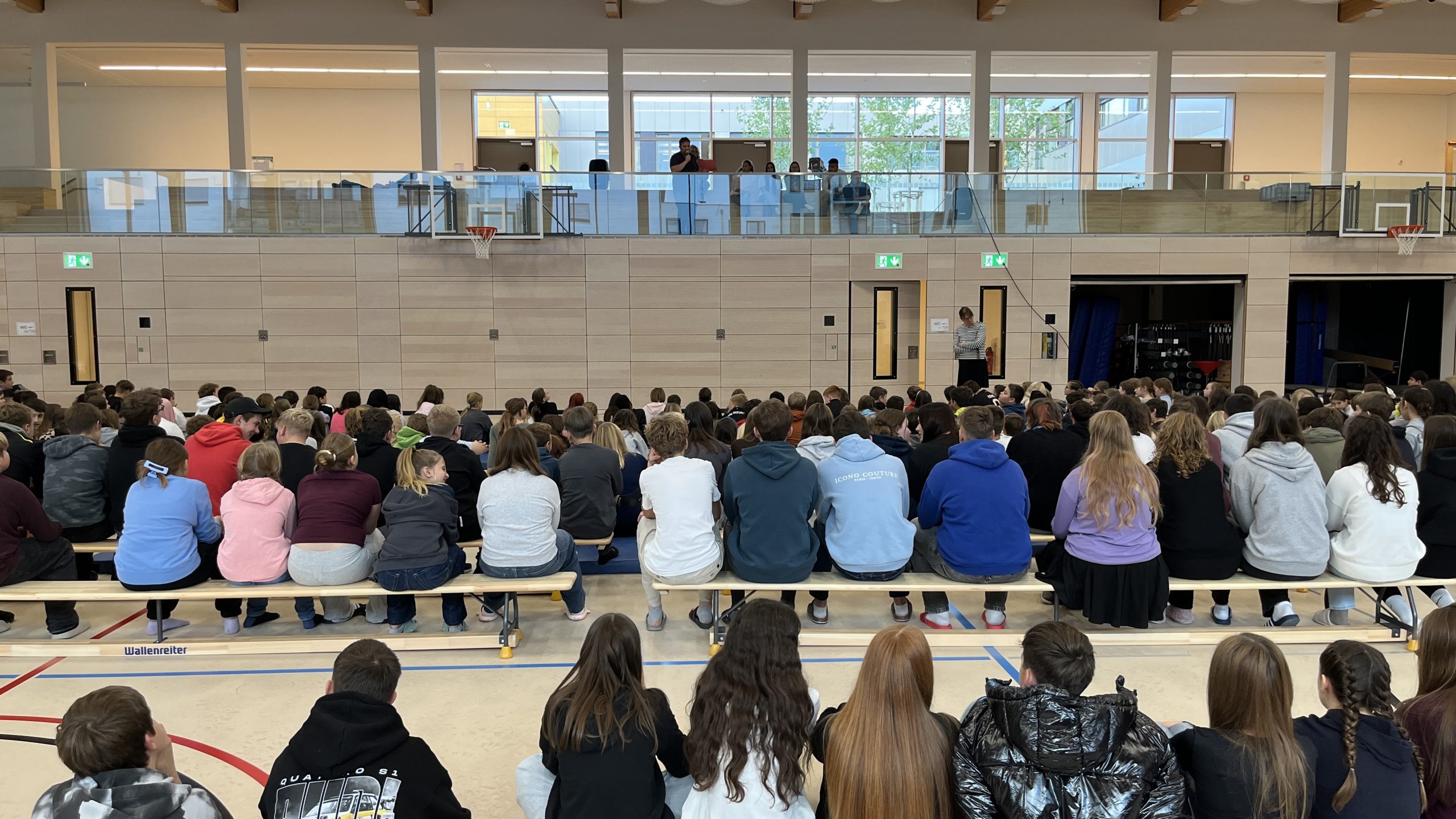 In der ersten Schulversammlung, die am 13.10.2025 fand in der Turnhalle stattfand, stellte Herr Geier die neuen Lehrkräfte vor und informierte die Schülerschaft über Regeln des Schullebens und Projekte des Schuljahres mit dem Schwerpunkt „Ausbildungsmesse“.