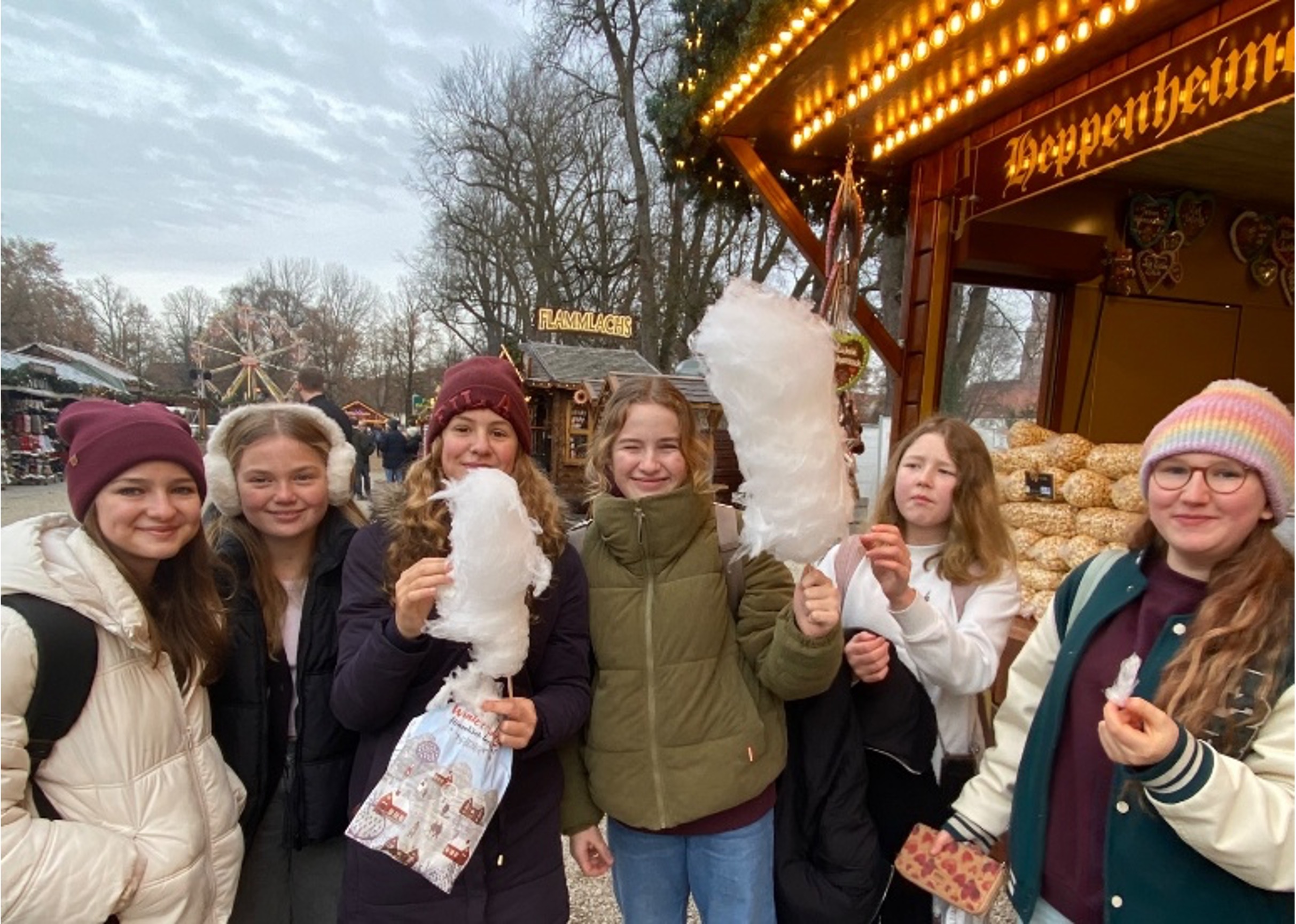 Am Mittwoch, den 17. Dezember machten sich die Klassen 6a und 7a gemeinsam auf den Weg nach Landshut. Bei kühlem, aber trockenem Wetter erkundeten die Schülerinnen und Schüler in Kleingruppen die Landshuter Altstadt und besorgten die letzten Weihnachtsgeschenke für ihre Liebsten. Anschließend spazierten alle gemeinsam zum Landshuter Christkindlmarkt. Nach spaßigen Karussell- und Riesenrad-Fahrten schlenderten die Schülerinnen und Schüler über den Markt und genossen die vorweihnachtliche Stimmung bei heißem Kinderpunsch und leckeren Essensspezialitäten.