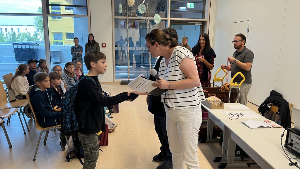 Als Einstandsgeschenk gab es den inzwischen zur Tradition gewordenen „Breznfünfer“ sowie ein Milchgetränk für die erste Pause.