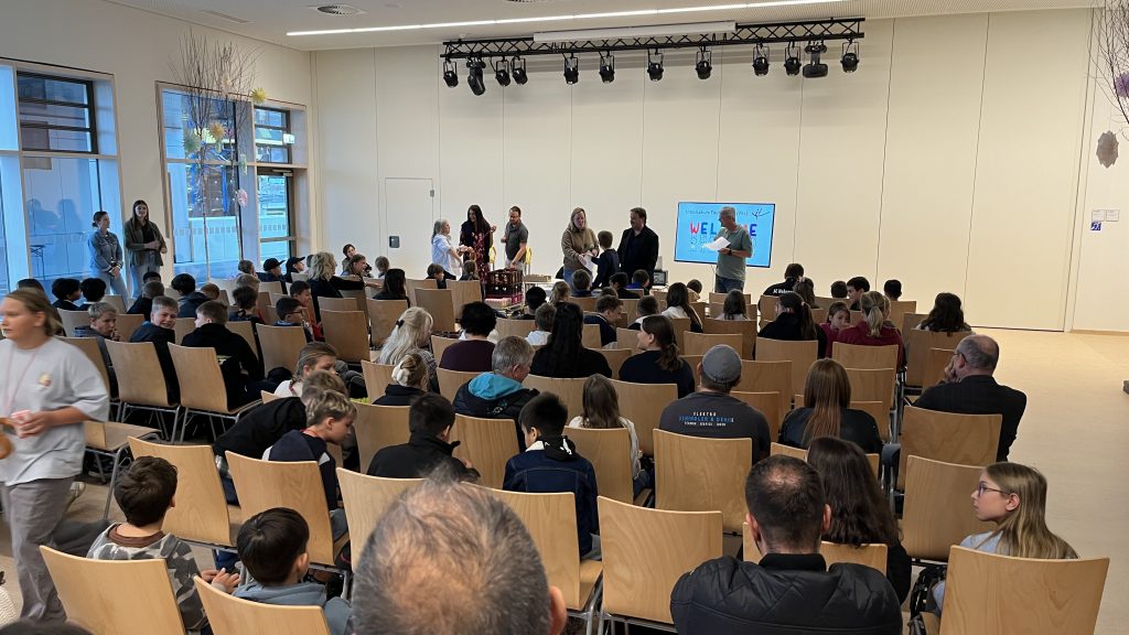 Am ersten Schultag wurden unsere neuen Schüler, darunter etwa 80 Fünftklässler, erstmalig in der Aula empfangen. Rektor Ade Geier begrüßte die Neuankömmlinge. Er stellte die Klassenleiter und Fachlehrkräfte der 5. Jahrgangsstufe vor sowie zusätzliche Ansprechpartner (u.a. Schulberater, Personal der Jugend- und Schulsozialarbeit), sollte es wider Erwarten zu anfänglichen Schwierigkeiten kommen.