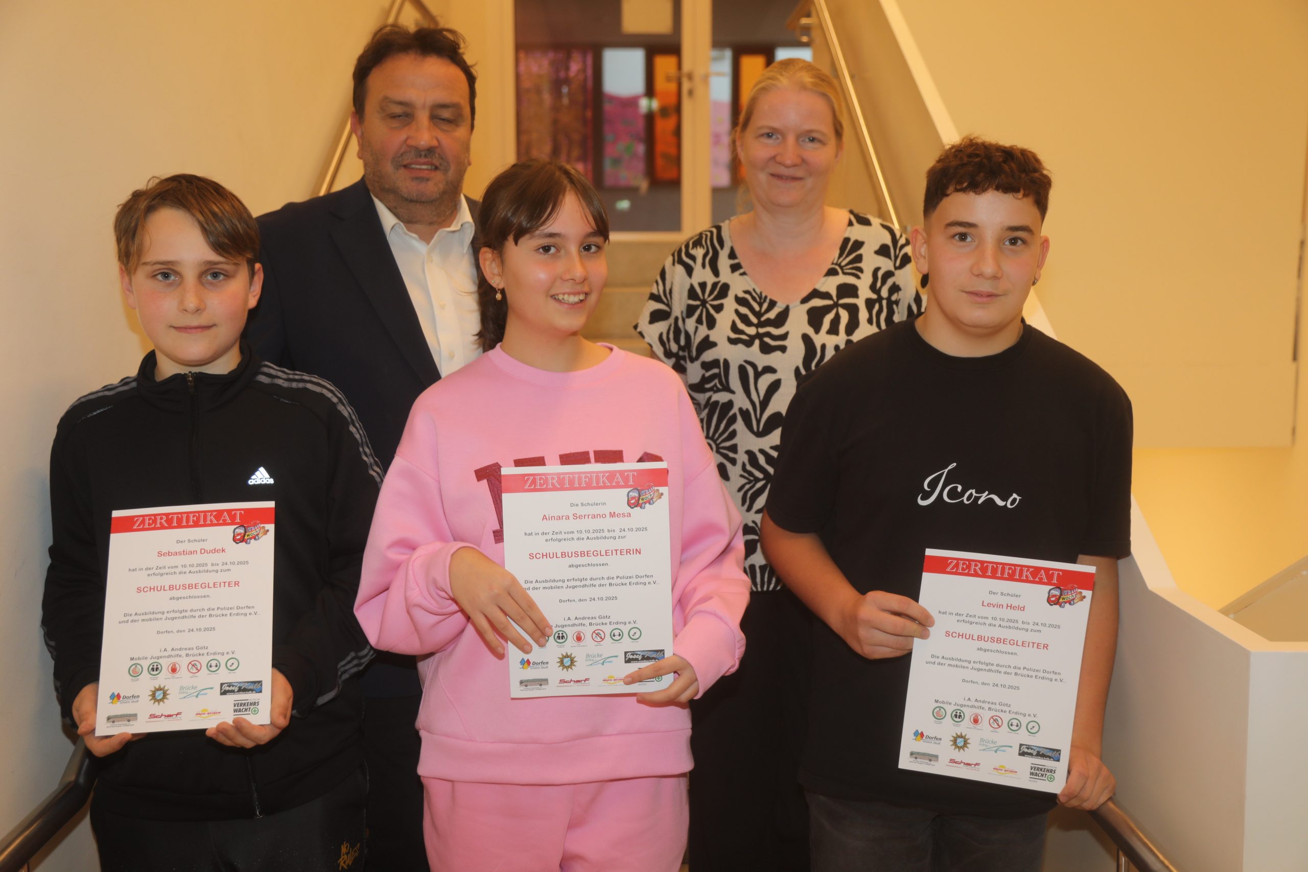 Die sogenannten OWacht-Helfer haben wieder einen Lehrgang absolviert und sind nun offiziell im Dienst. Im Rahmen ihrer Ausbildung wurden auch diesmal wieder zu Schuljahresbeginn Schüler/innen der 8. Jahrgangsstufe aus den Mittelschulen Dorfen und Taufkirchen, der Realschule Taufkirchen und dem Gymnasium Dorfen zu Busbegleiter/innen ausgebildet.