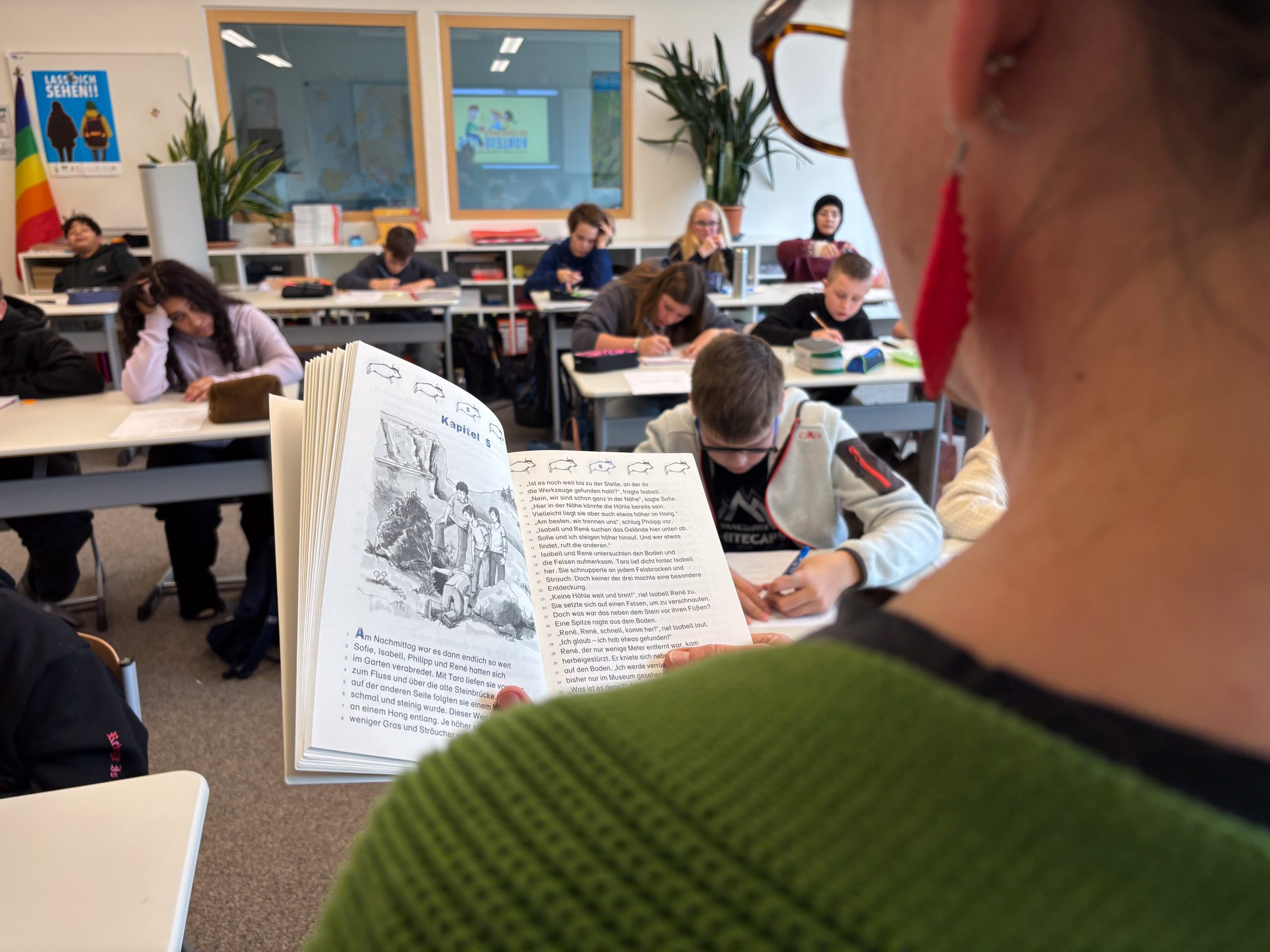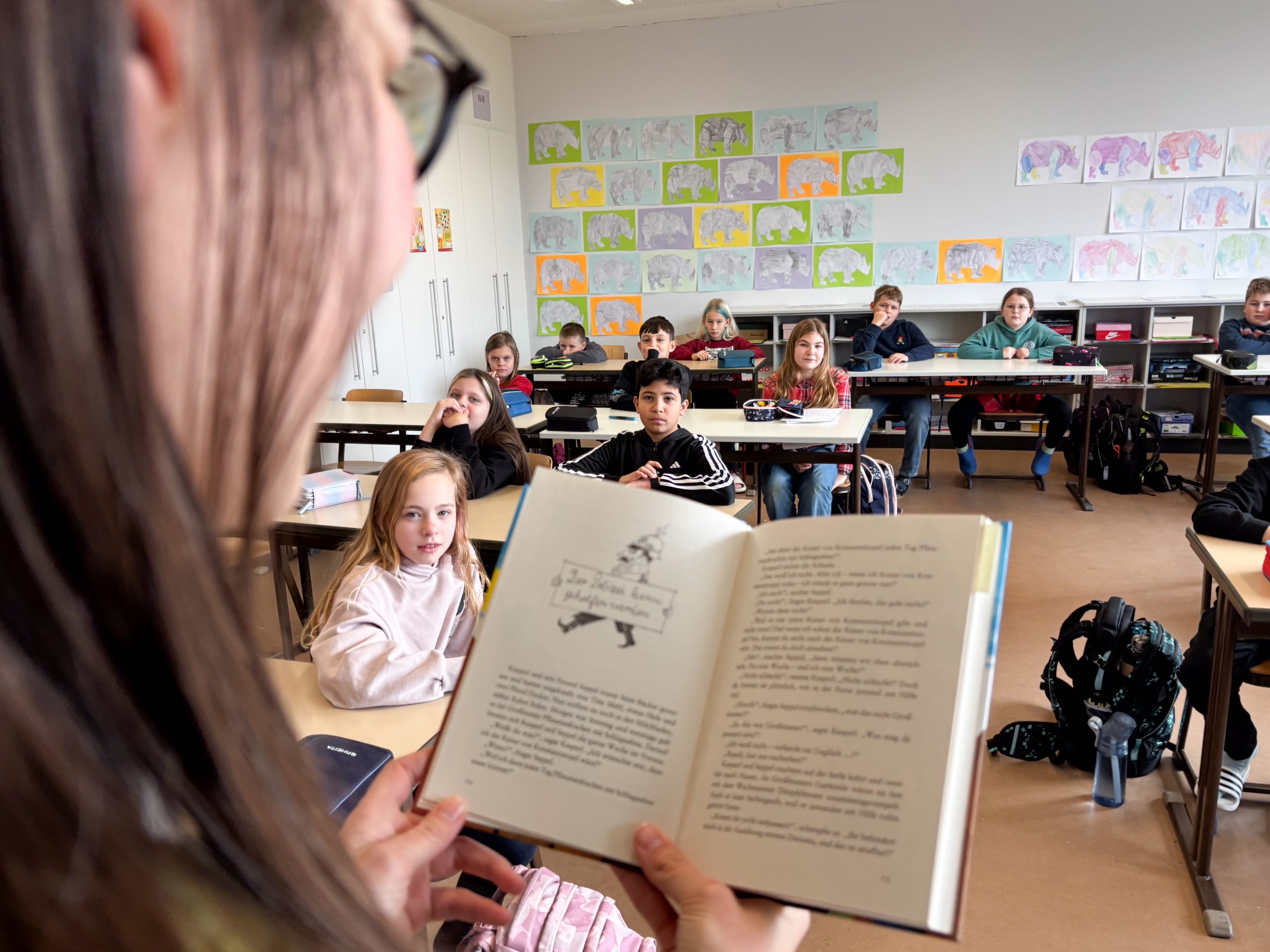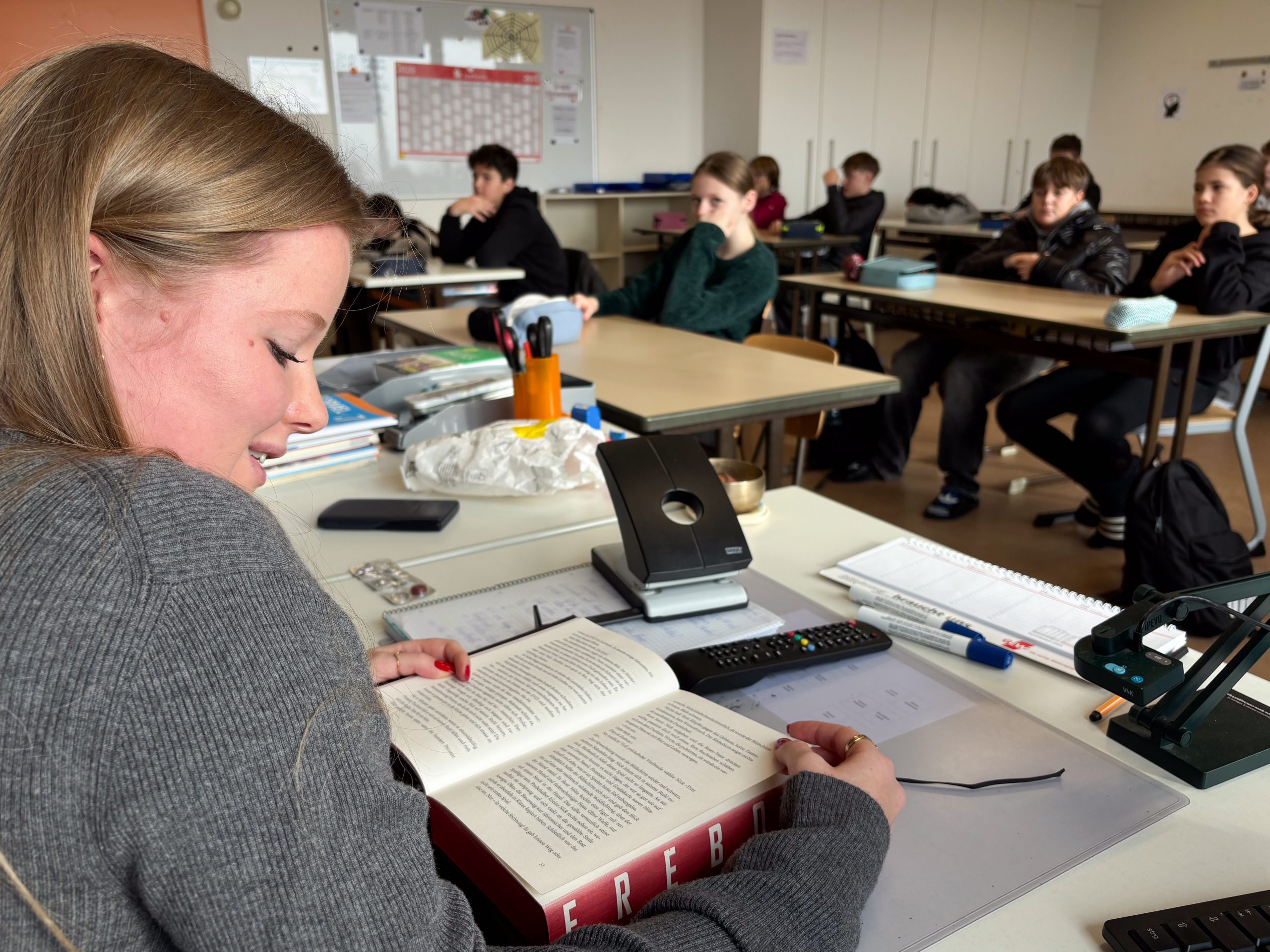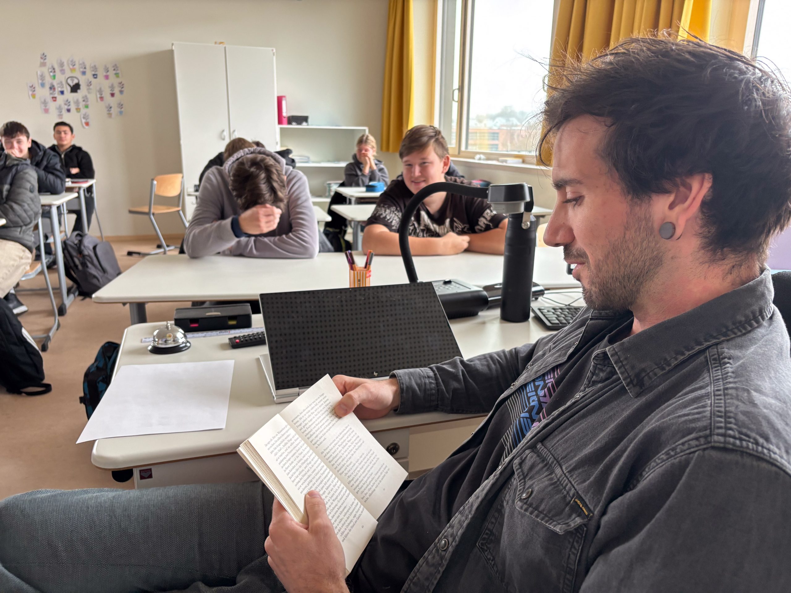 Dieses Mal bedanken wir uns beim Mittelschulseminar nicht nur für`s Vorlesen in vielen Klassen, sondern auch für Buchspenden der Seminarleiterin Anna Heindl. Unser Dank geht ebenso an Yvonne Wiesmann, Alona Shramko und Ade Geier, der in der Nikolausklasse las. Da die Lesung von Stephanie Lunkewitz Anfang Oktober die 6. Klassen nachhaltig bewegte, las Robert Ackermann in der neuen Schülerbücherei für mehrere Klassen „Ich war Eva Diamant“ gegen das Vergessen, für Menschlichkeit!