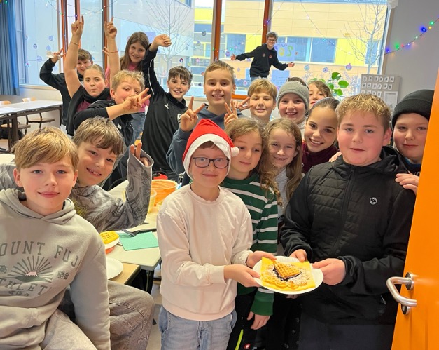 Die Klasse 6a beschloss, einen Adventsausflug nach Landshut zu machen. Um die Kosten für den Bus selbst aufzutreiben, war unternehmerisches Geschick gefragt. So planten die Schülerinnen und Schüler ihren eigenen Waffelverkauf für Donnerstag, den 11. Dezember. Während einige Kinder zuhause den Waffelteig vorbereiteten, brachten andere ihre Waffeleisen und weitere notwenige Materialien mit in die Schule. „Die erste Waffel wird nie was“, war zu Beginn des Backens häufiger zu hören. Doch zur ersten Pause war bereits ein lecker duftender Waffelgeruch in den Gängen des Schulhauses zu vernehmen, der jede Menge hungriger Kinder anlockte. Knapp 70 Waffeln gingen in der 15-minütigen Pause über die Theke, bis alle Vorräte aufgebraucht waren. Durch viel Fleiß, Teamarbeit und Verkaufsgeschick der Schülerinnen und Schüler war der Adventsausflug nach Landshut gesichert.
