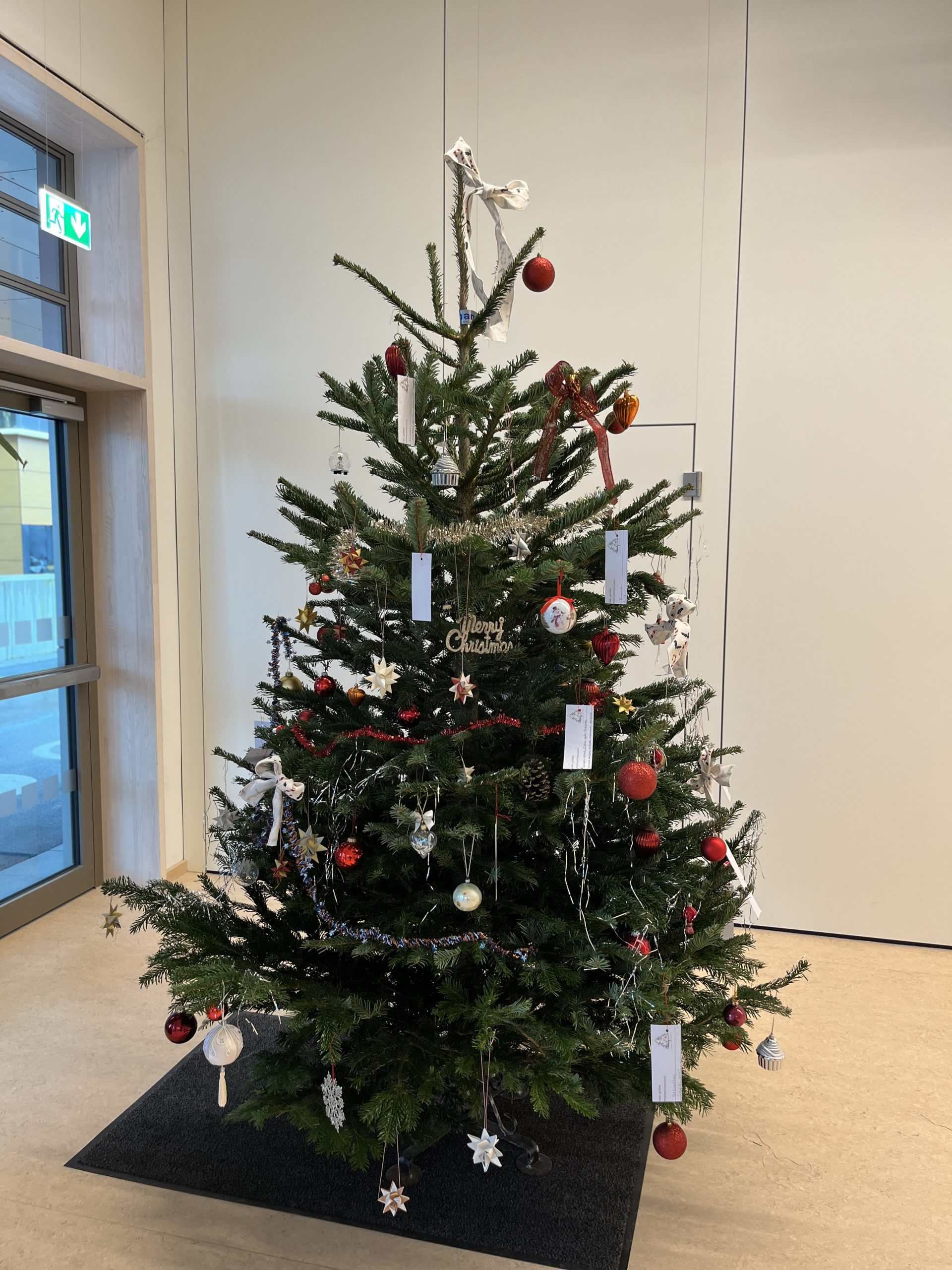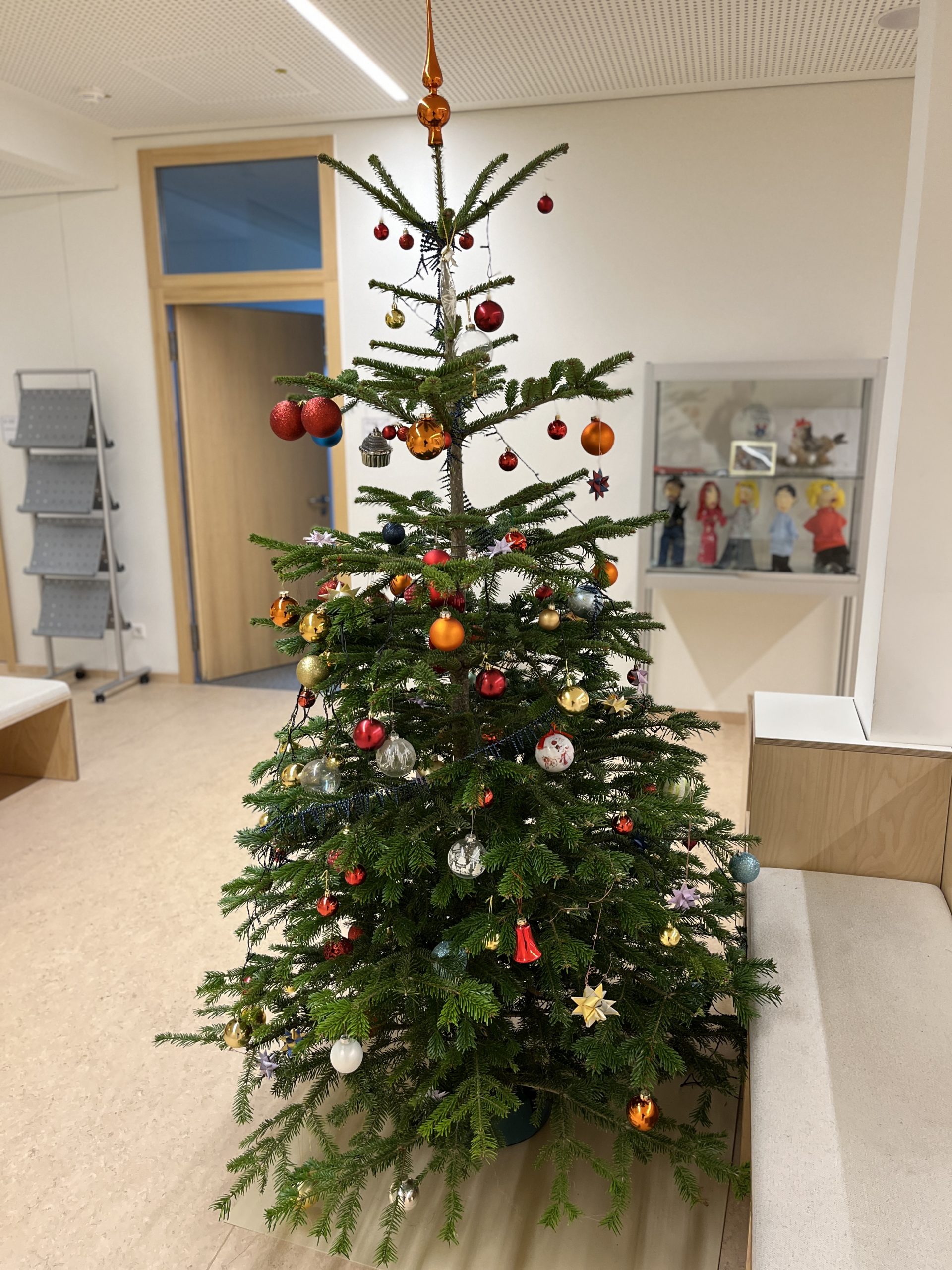 In der Aula sowie im Neubau (1. Stock) schmücken zwei gespendete Weihnachtsbäume unsere Schule und „begleiten“ uns nun durch die Vorweihnachtszeit.